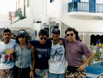 Nel lontano 1992...cinque diciottenni affamati in una folle e lontana Mykonos...da sinistra: Lorenzo Fischetto, Fabio Petrosillo, Salvatore De Leonardis, Marco Fischetto, Giampiero Rucco...e chi se la scorda, quella vacanza...