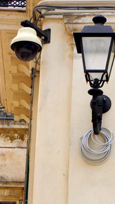 Una telecamera Dom che registra a 360° è stata coperta con un lampione.