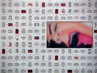 Dal 2003, anno del debutto con la personale brindisina “Memo/Slides” (curata da chi scrive), è ancora così: la coerenza, si diceva; dipinge ritratti su legno di piccolo formato, dal marcato realismo (le figure sono mutuate da fotografie), e simultaneamente assembla pannelli con telaietti da diapositive tenuti con fil di ferro, nei quali ha sostituito la pellicola con altri elementi visual-letterari.
