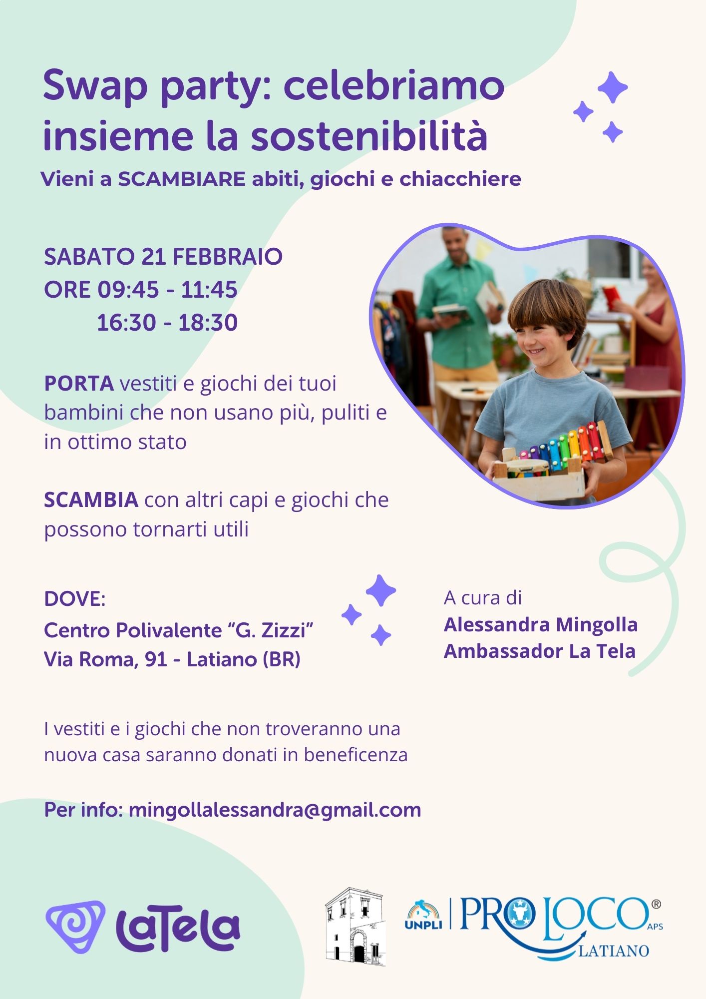 In occasione della settimana di “M’illumino di meno”, l’iniziativa nazionale dedicata al risparmio energetico e agli stili di vita sostenibili, il progetto La Tela Ambassador promuove un evento speciale dedicato alle famiglie del territorio: lo Swap Party.