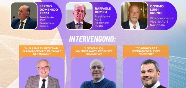 Tra i temi trattati la donazione di plasma con l’intervento del Dott. Vincenzo De Angelis, già direttore del Centro Nazionale sangue, i giovani e il volontariato che vedrà la relazione di Don Mario Zaninelli, docente scienze motorie Università di Milano e la Comunicazione che sarà trattata da Tiziano Mele, mental coach e collaboratore del CSV. Saranno presenti il Presidente Regionale Raffaele Romeo e il Vice Presidente Vicario di Avis Nazionale Luigi Bruno e diversi rappresentanti Istituzionali ed associativi, tra cui la Presidente della Comunale di Mesagne Giada Vetrugno
