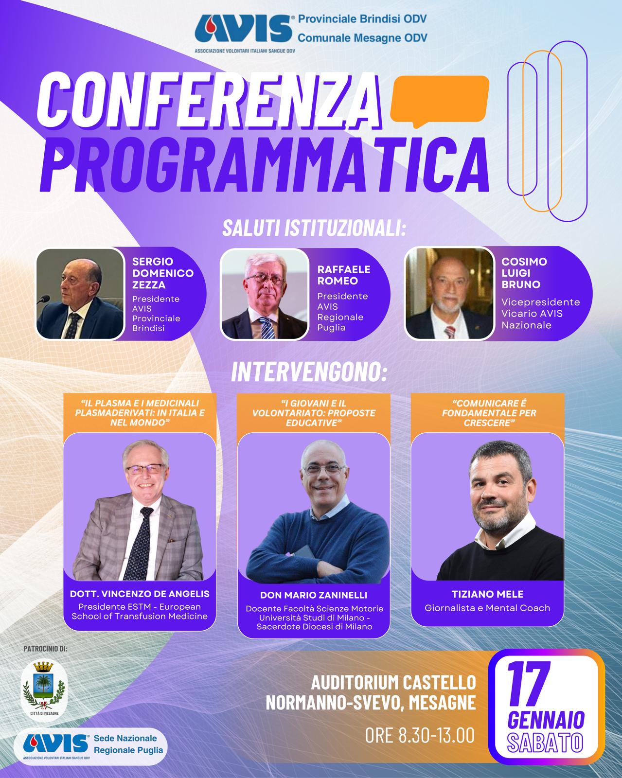Si svolgerà il prossimo 17 gennaio 2026 la Conferenza Programmatica di Avis Provinciale Brindisi in collaborazione con la Comunale di Mesagne.