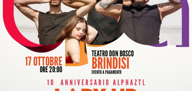AlphaZTL Compagnia d’Arte Dinamica, compagnia di danza contemporanea diretta da Vito Alfarano, celebra dieci anni di arte nel sociale con una serata speciale dedicata a creatività scenica, inclusione e libertà di espressione. Il 17 ottobre alle ore 20:00, il Teatro Don Bosco di Brindisi ospita un evento unico, all’interno del Brindisi Performing Arts, che unisce mostra fotografica, proiezione del documentario e performance di danza Lady Up, con Francesca De Giorgi, giovane danzatrice con sindrome di Down, i detenuti della Casa Circondariale di Brindisi e i professionisti di AlphaZTL.