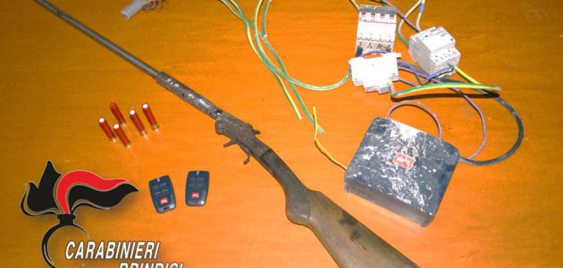 I Carabinieri della Stazione di Ceglie Messapica hanno tratto in arresto in flagranza di reato TARI’ Rocco 72enne del posto, per detenzione abusiva di arma clandestina alterata, munizionamento comune da sparo e furto di energia elettrica con violenza sulle cose. L’uomo era stato sottoposto alla misura degli arresti domiciliari per detenzione ai fini di spaccio di sostanza stupefacente, a seguito di perquisizione personale e domiciliare, è stato trovato in possesso di un telecomando per l’attivazione e disattivazione abusiva all’impianto di energia elettrica dalla rete pubblica, che teneva in tasca. Nel corso dell’espletamento dell’atto di polizia giudiziaria gli sono state rinvenute cinque cartucce calibro 36 tenute nella tasca destra dei pantaloni, nonché un fucile con matricola abrasa, occultato all’interno di un’autovettura di sua proprietà parcheggiata all’interno del garage di pertinenza dell’abitazione, il tutto sottoposto a sequestro.
