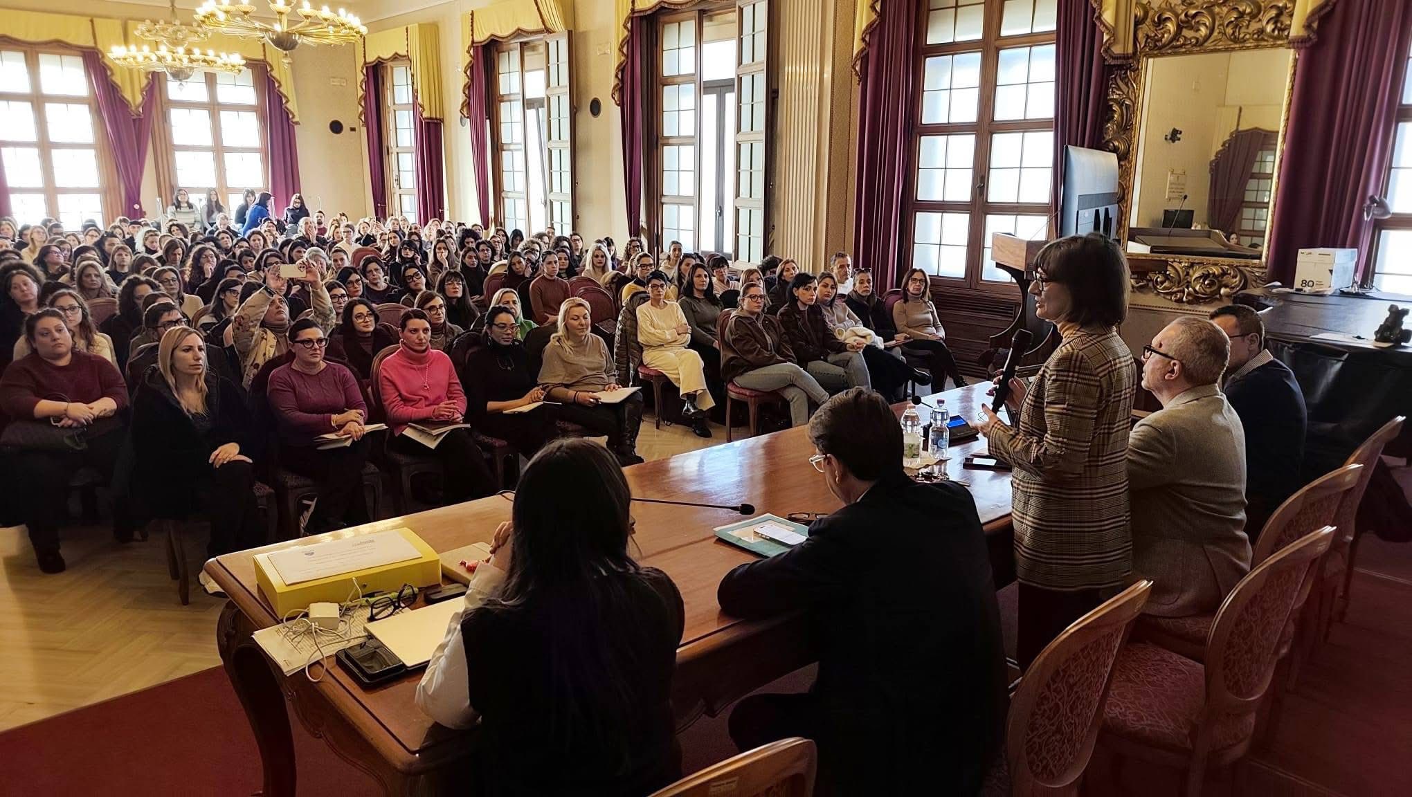In un gremito salone di rappresentanza, il percorso di formazione si è aperto con i saluti della dott.ssa Fernanda PRETE, Dirigente Servizio I della Provincia. A seguire l’intervento del dott. Cristian CASILI, Assessore al Welfare, Sport, Politiche Giovanili della Regione Puglia.