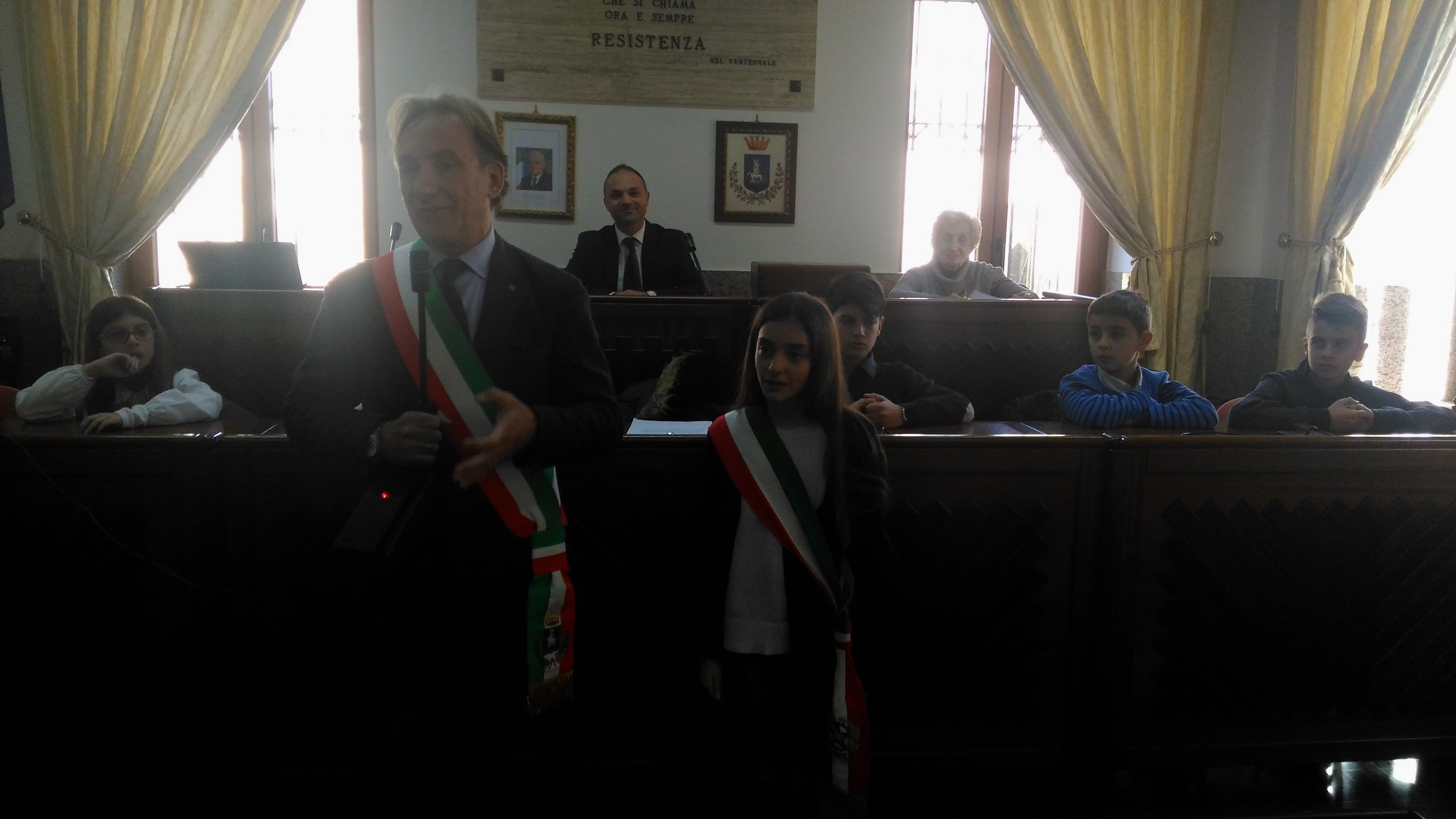 Il sindaco dei ragazzi ha quindi illustrato il suo programma ed ufficializzato la composizione della sua giunta: Antonio Camarda (vicesindaco ed assessore con delega allo sport e tempo libero), Desiree Ruggiero (delega all’istruzione e cultura), Francesco Simeone (problematiche ambientali), Jacopo Giudice (rapporti con l’Unicef), Katia Berardino (promozione della cultura della pace), Alisha Errico (rapporti tra anziani e giovani).