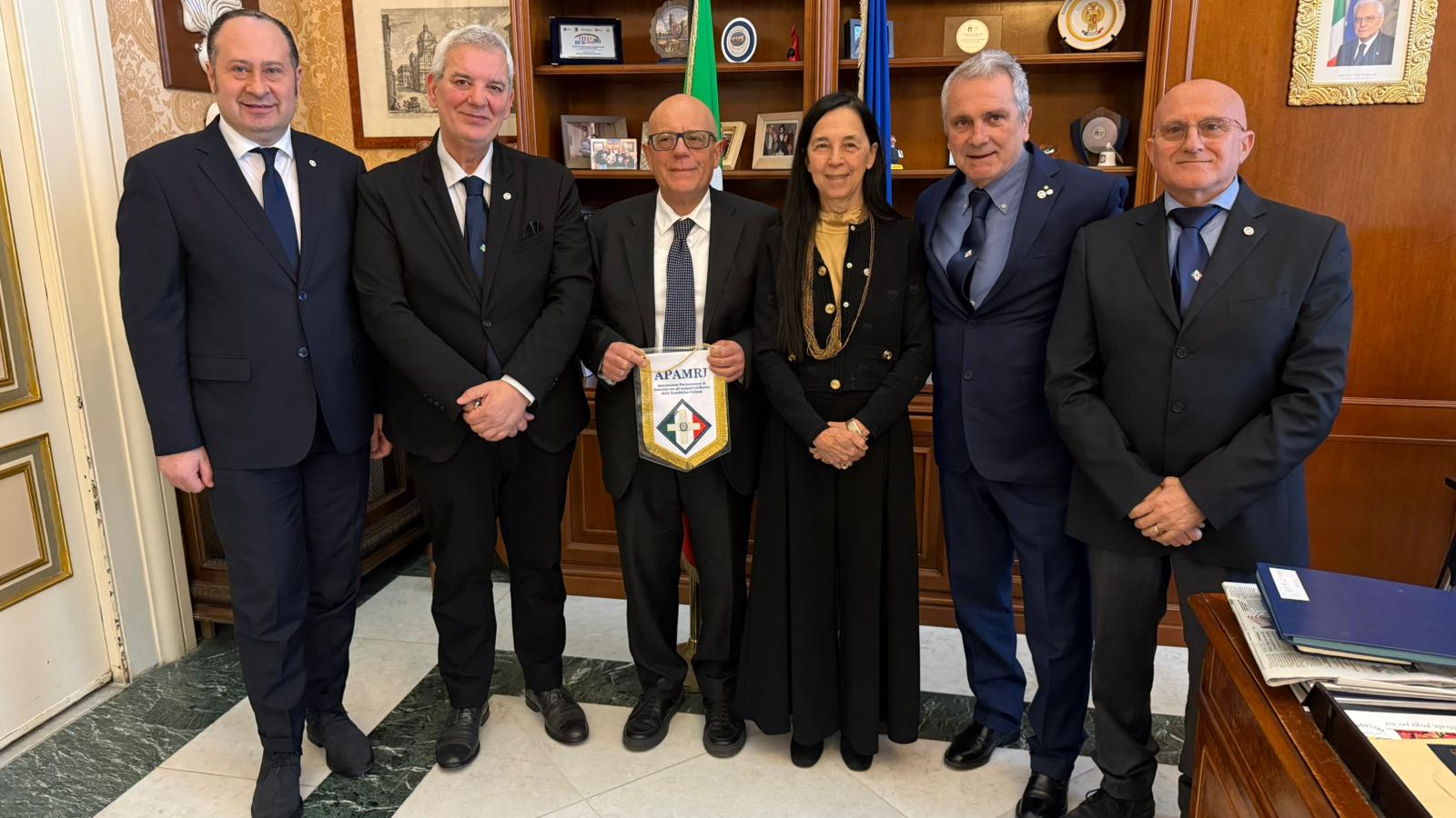 In apertura dell’incontro, la delegazione ha porto i saluti istituzionali del Segretario generale di Apamri, dott. Comm. Omri Michele Grillo, unitamente a quelli di tutti gli iscritti e degli insigniti dell’Ordine al Merito della Repubblica Italiana (OMRI).
