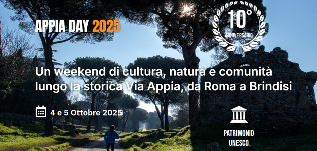 In occasione dell’Appia Day, le città di Brindisi, Oria, Ostuni, Mesagne, Latiano, Castellaneta, Taranto, Fasano, Francavilla, Laterza, Monopoli, San Vito dei Normanni, Carovigno e altri centri lungo l’antica Regina Viarum promuovono un ricco calendario di iniziative dedicate alla valorizzazione del patrimonio storico, archeologico, paesaggistico e culturale della Via Appia, patrimonio UNESCO.