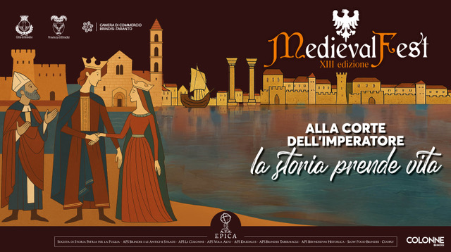 Con il patrocinio del Comune di Brindisi e della Camera di Commercio di Brindisi-Taranto nell’ambito delle iniziative promosse dall’ATS EPICA, si conclude la XIII edizione del Medieval Fest – Federico II e le Nozze tra Oriente e Occidente, evento che nel 2025 assume un valore straordinario nel ricordo dell’VIII centenario del matrimonio imperiale tra Federico II di Svevia e Isabella di Brienne, celebrato nel Duomo di Brindisi il 9 novembre 1225.