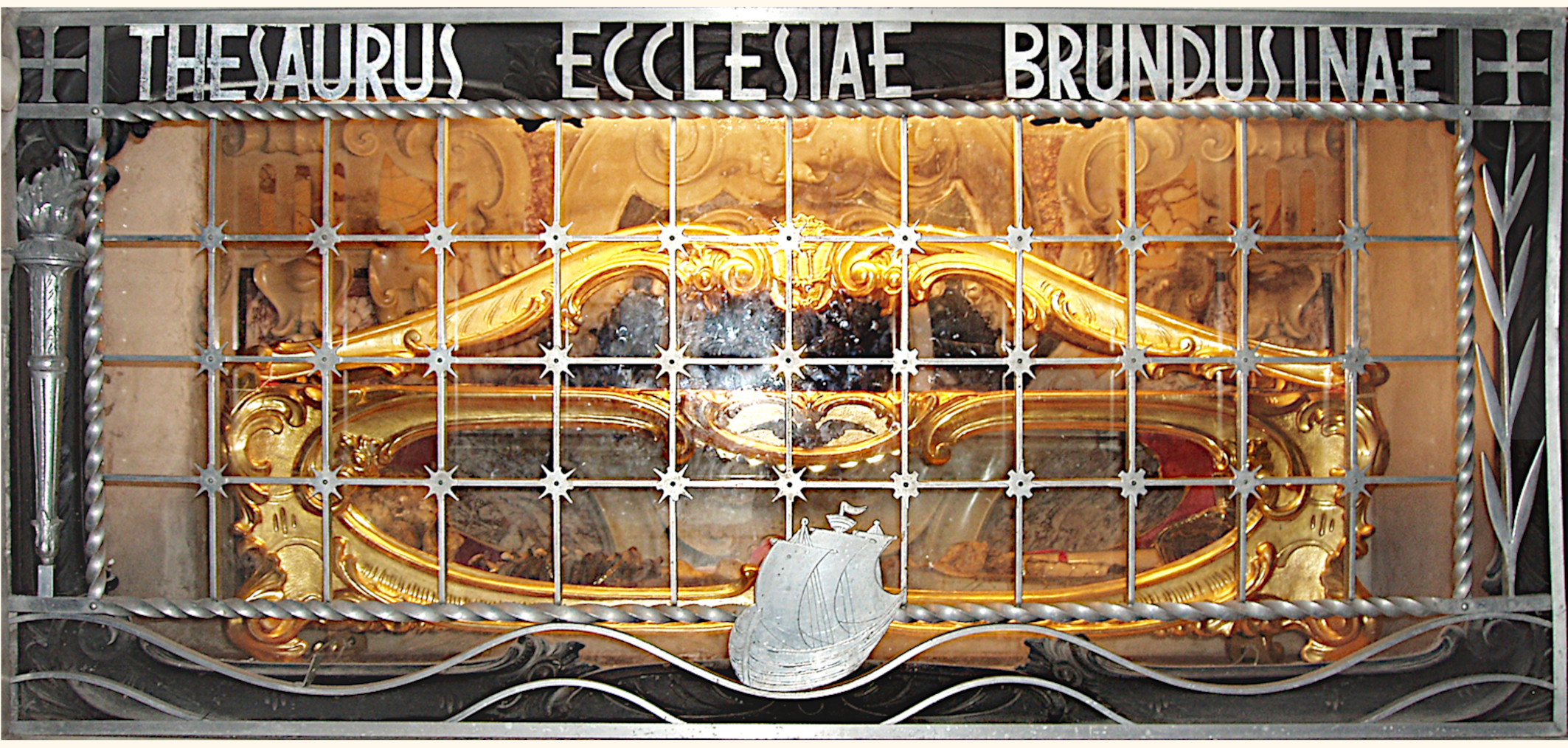 La data del 9 novembre 1225 è scolpita nella memoria della città. Quel giorno, antica memoria liturgica del soldato martire Teodoro, la Cattedrale romanica ospitò le nozze dell’imperatore Federico II di Svevia con Isabella di Brienne, Regina di Gerusalemme. Il corpo del santo potrebbe essere giunto dall’Oriente a Brindisi proprio in occasione delle nozze imperiali. Da allora riposa nella Pontificia Basilica Cattedrale, venerato con il titolo di «Thesaurus Ecclesiae Brundusinae» (Tesoro della Chiesa di Brindisi).