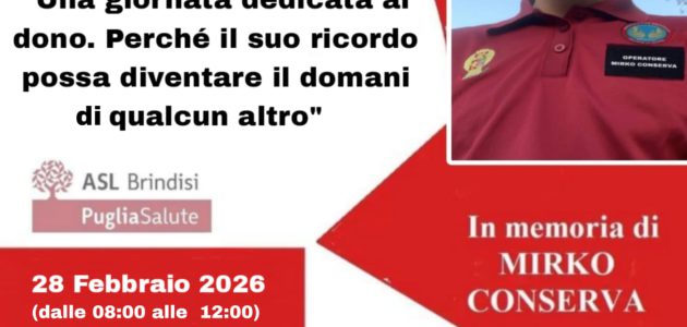 L’evento è organizzato in collaborazione con il centro trasfusionale della Asl Brindisi e con il supporto della dottoressa Maria Antonietta Miccoli, che ha accompagnato la famiglia e l’associazione nella costruzione di un momento di partecipazione collettiva. La donazione di sangue, gesto semplice ma essenziale, diventa così un modo per rendere omaggio alla generosità di Mirko e alla forza con cui i suoi cari stanno affrontando un dolore che ha segnato l’intera comunità.