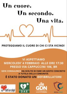 L’associazione “Batti un Colpo” prosegue così il suo percorso di sensibilizzazione e prevenzione, con l’obiettivo di rendere Brindisi una città sempre più sicura e cardioprotetta.