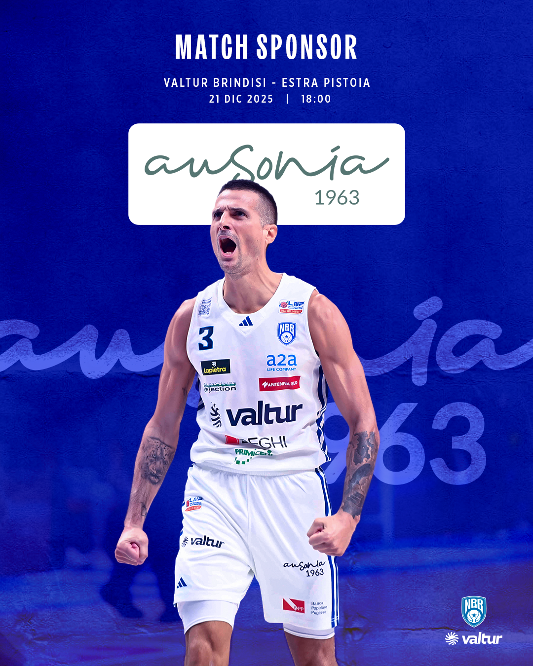 Caffè Ausonia sarà il match sponsor della partita di campionato tra la Valtur Brindisi ed Estra Pistoia, in programma domenica 21 dicembre al PalaPentassuglia alle ore 18:00.