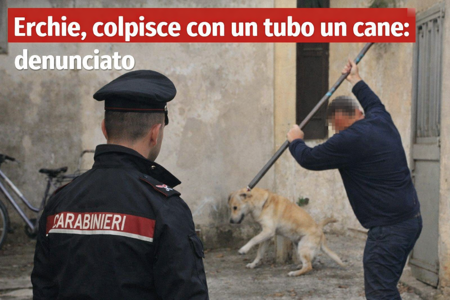 I militari della Stazione locale sono intervenuti a seguito di una segnalazione e hanno accertato quanto stava accadendo nei pressi dell’abitazione dell’uomo. Secondo quanto ricostruito, l’individuo è stato sorpreso mentre colpiva ripetutamente, utilizzando un tubo metallico, il cane di un concittadino che si trovava nelle vicinanze.