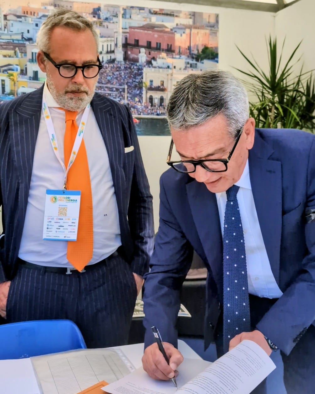 Il sindaco ha innanzi tutto sottolineato «l’importanza simbolica della Convenzione. È la prima, che noi speriamo sia di una lunga serie – ha proseguito -, e per questo ringrazio il dottor Migliorini, che partecipa alla rassegna de “I colori dell’energia”, perché ha colto al volo l’occasione per essere in condizione di apporre una firma in presenza. Essa, come ribadito, ha un valore simbolico perché per noi la transizione energetica, l’abbandono delle fonti fossili per abbracciare la produzione di energia da fonti rinnovabili, che sviluppano anche il concetto di compensazioni territoriali e sono la grande occasione di ripensare complessivamente alla visione della città e alla sua qualità della vita, che si deve riuscire a costruire con nuove modalità». «Per questo, l’atto di sottoscrizione odierno è fortemente simbolico – ha concluso il sindaco – e, ripeto, sia il primo di una lunga serie».