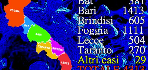 Il totale dei casi positivi Covid in Puglia è di 4.313 così divisi:
