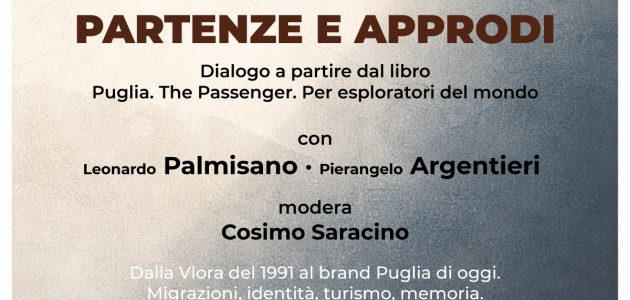 L’incontro, dal titolo “Dalle partenze agli approdi: la Puglia tra luce e ombra”, prende spunto dal libro Puglia. The Passenger. Per esploratori del mondo e vedrà il confronto tra Leonardo Palmisano e Pierangelo Argentieri, moderato dal giornalista Cosimo Saracino.