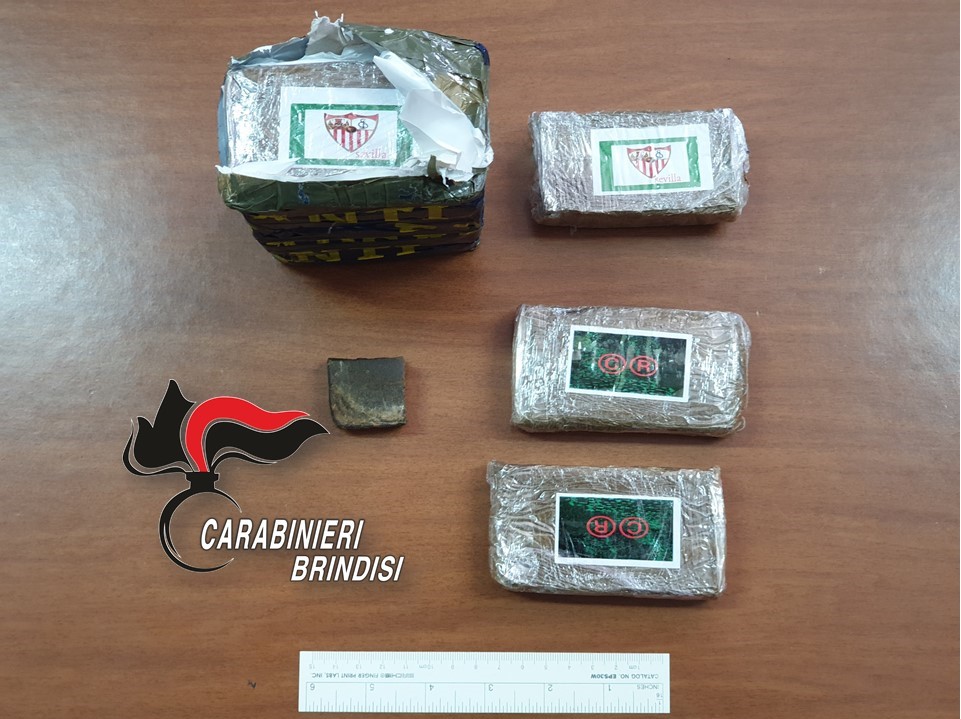 A Fasano, i Carabinieri del Nucleo Operativo e Radiomobile della locale Compagnia hanno arrestato un 56enne di Monopoli (BA), per detenzione ai fini di spaccio di sostanze stupefacenti. In particolare, l’uomo, sottoposto a perquisizione personale e domiciliare è stato trovato in possesso di 811 grammi di hashish, suddivisi in 8 panetti occultati in un contenitore di vetro nascosto su un soppalco dell’abitazione, il tutto sottoposto a sequestro. L’arrestato, al termine delle formalità di rito, è stato presso la sua abitazione in regime di arresti domiciliari come disposto dall’Autorità Giudiziaria.