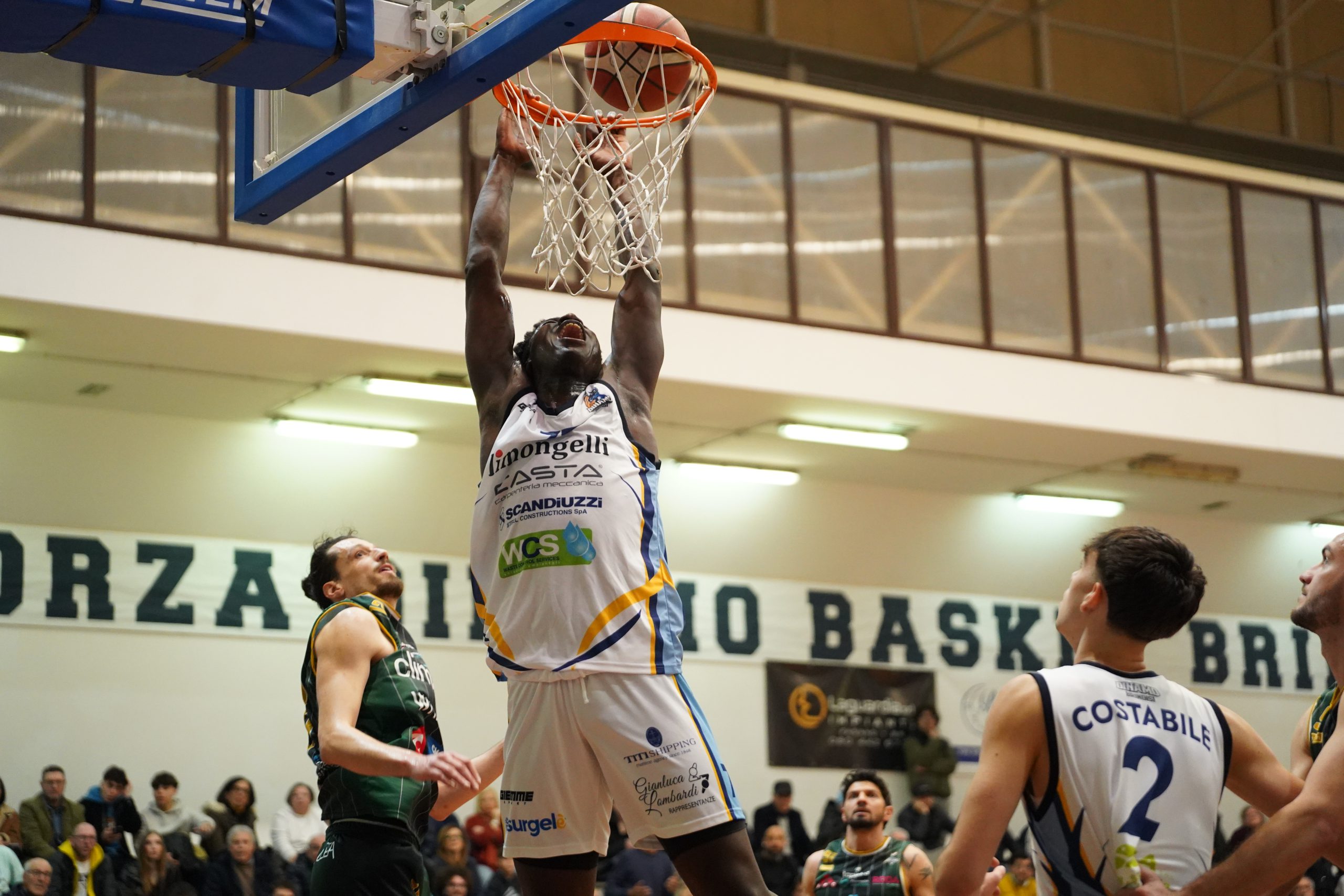 Una serata da ricordare, di quelle che accendono la passione di un’intera piazza. In un PalaZumbo esaurito e festante, la Dinamo Brindisi conquista una vittoria elettrizzante superando la Climaway Monopoli per 80-73 al termine di un derby intenso e combattuto, mandando ben cinque giocatori in doppia cifra. Un successo dal grande peso specifico, che permette ai biancoblù di ribaltare anche la differenza canestri rispetto alla gara di andata e di consolidare la propria posizione in classifica.