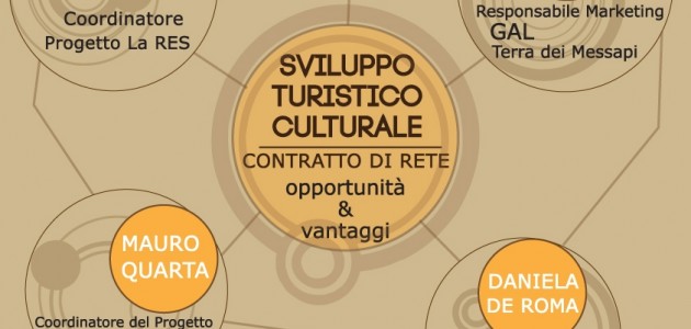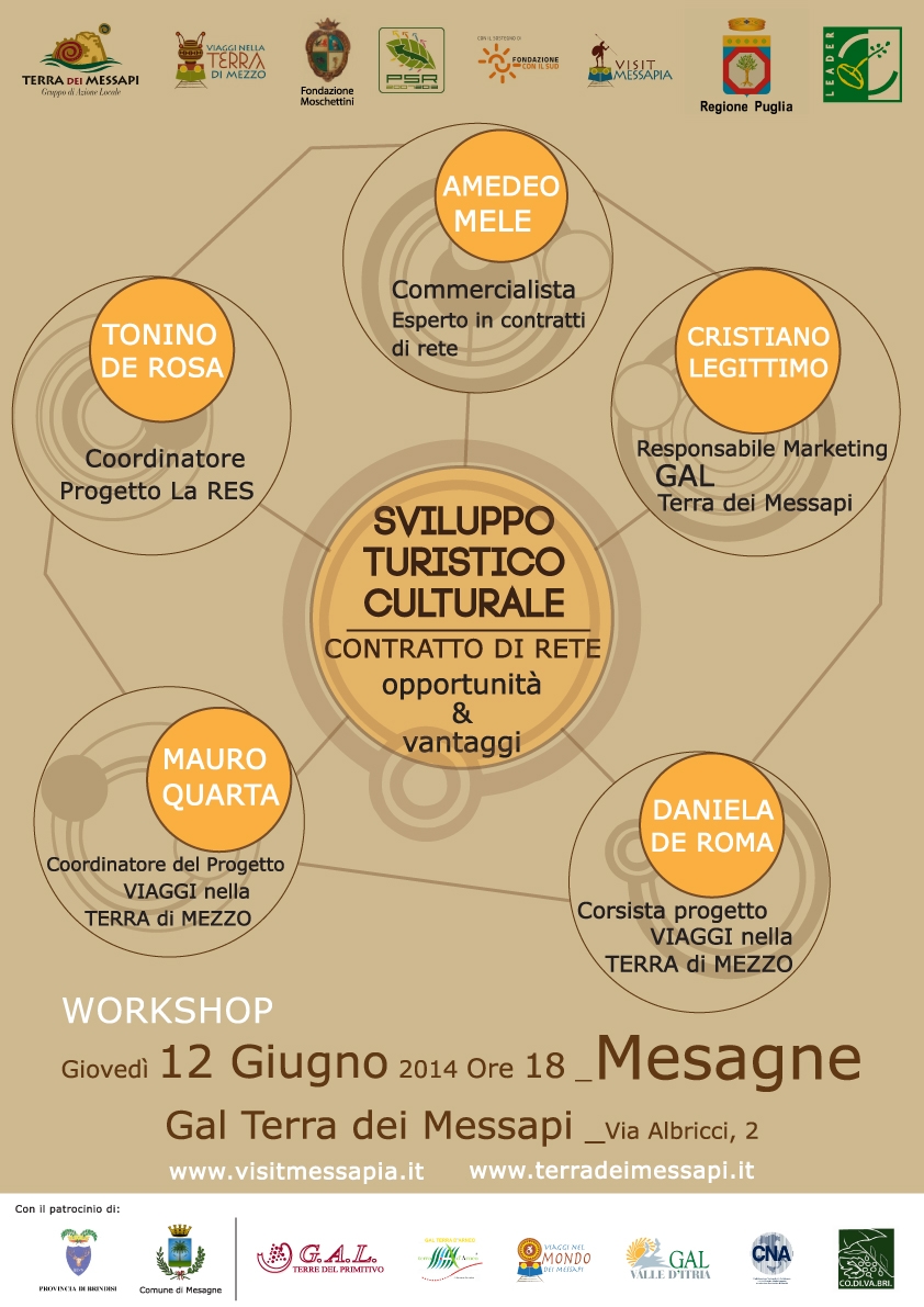 Si terrà Giovedì 12 Giugno 2014, alle ore 18.00, presso la sede del Gal Terra dei Messapi in Via Albricci n. 3, il Workshop dal titolo “Lo Sviluppo turistico culturale del territorio attraverso i vantaggi del contratto di rete”.