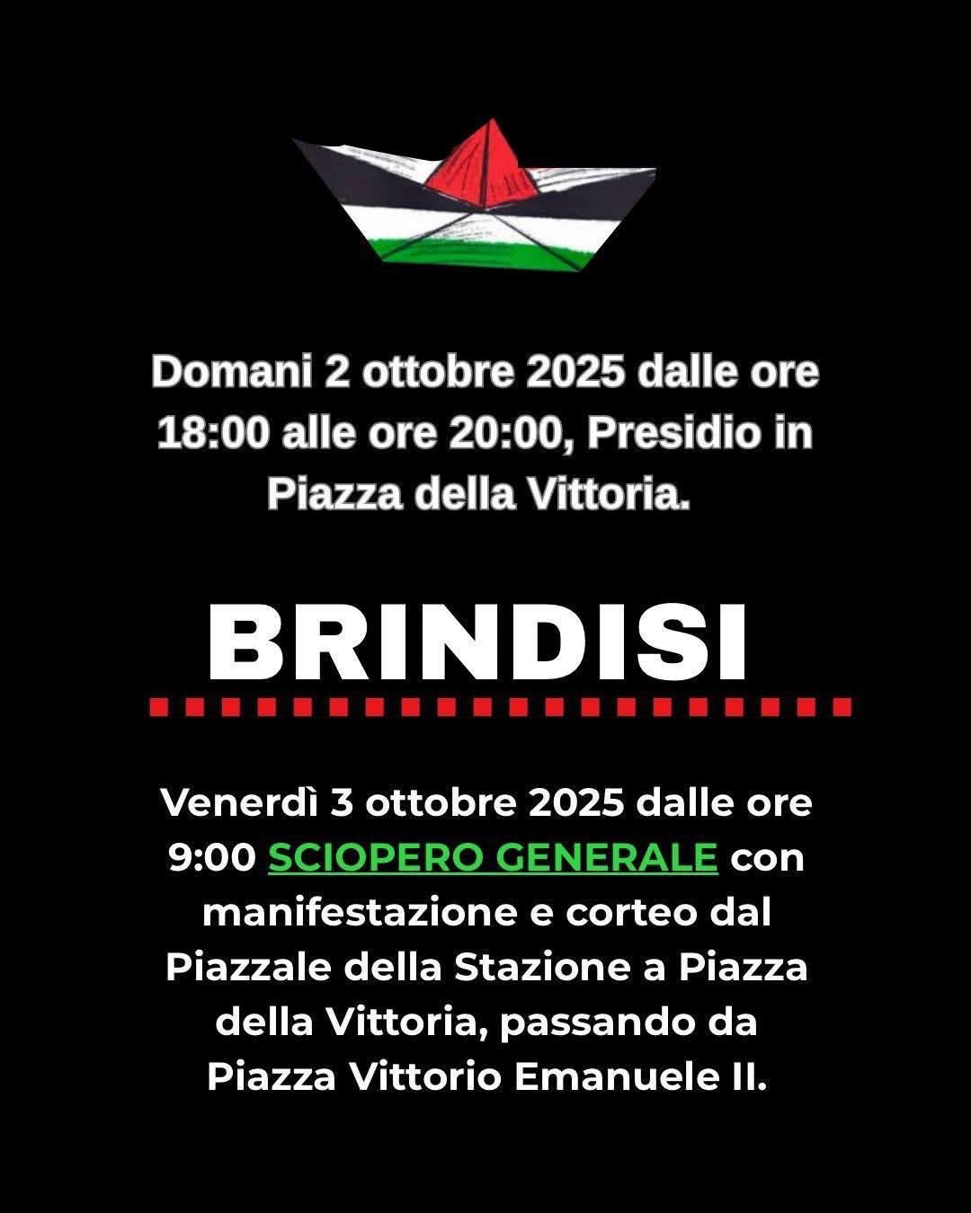 La mobilitazione è indetta perché, secondo la Cgil, quanto accaduto alla Global Sumud Flotilla “navi civili che trasportavano cittadine e cittadini italiani, rappresenta un fatto di gravità estrema”. “Un attacco – sottolinea la Confederazione – all’ordine costituzionale che impedisce un’azione umanitaria e di solidarietà verso la popolazione palestinese sottoposta dal governo israeliano ad una vera e propria operazione di genocidio. Un attentato diretto all’incolumità e alla sicurezza di lavoratrici e lavoratori, volontarie e volontari imbarcati. É grave che il governo italiano abbia abbandonato lavoratrici e lavoratori italiani in acque libere internazionali, violando i nostri principi costituzionali”.