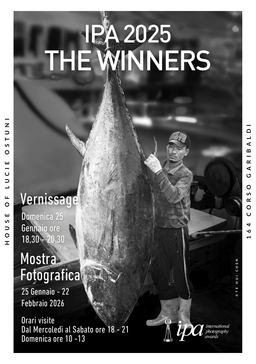 Prosegue l’attività fotografica nella House of Lucie di Ostuni: domenica 25 gennaio, alle 18.30, si inaugura Best of Show, una collettiva dei vincitori delle categorie degli International Photography Awards (IPA) 2025 con una selezione di immagini straordinarie. La mostra è curata da Eleni Mouzakiti, referente della House of Lucie Athens e direttrice artistica del Photopolis Festival.