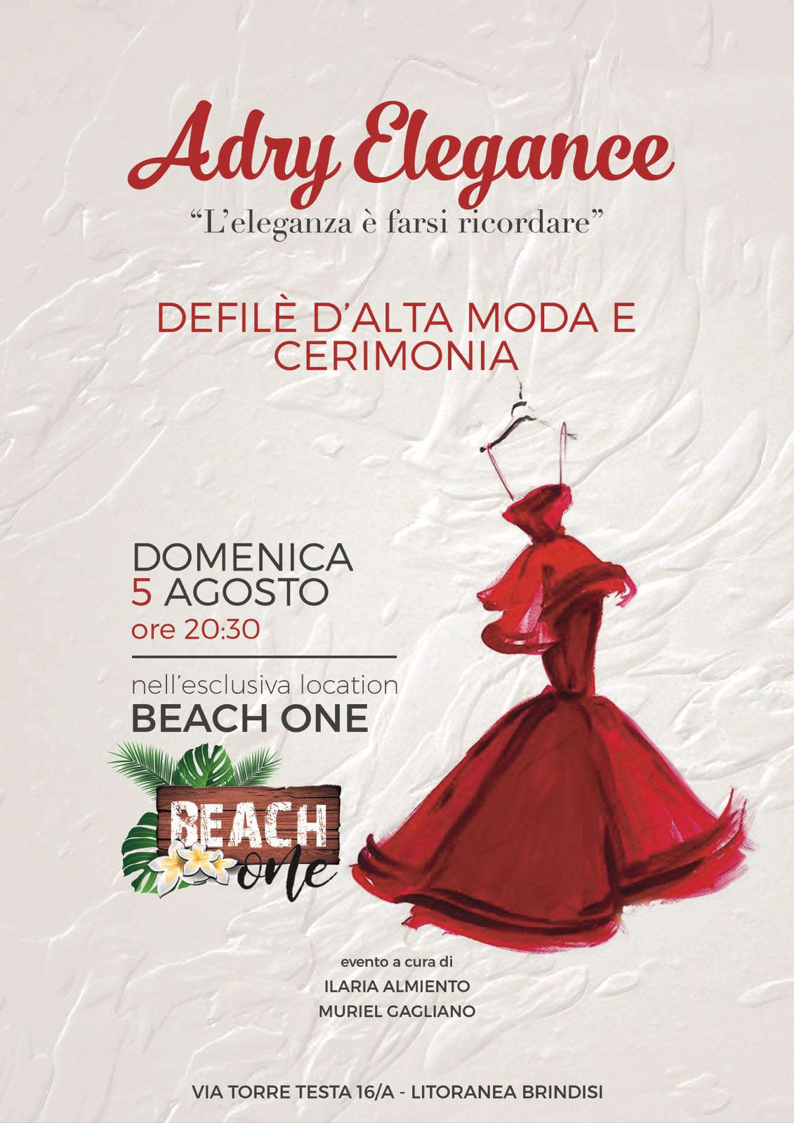 Domenica 5 Agosto Adry Elegance presenta un defilé di alta moda e cerimonia.
