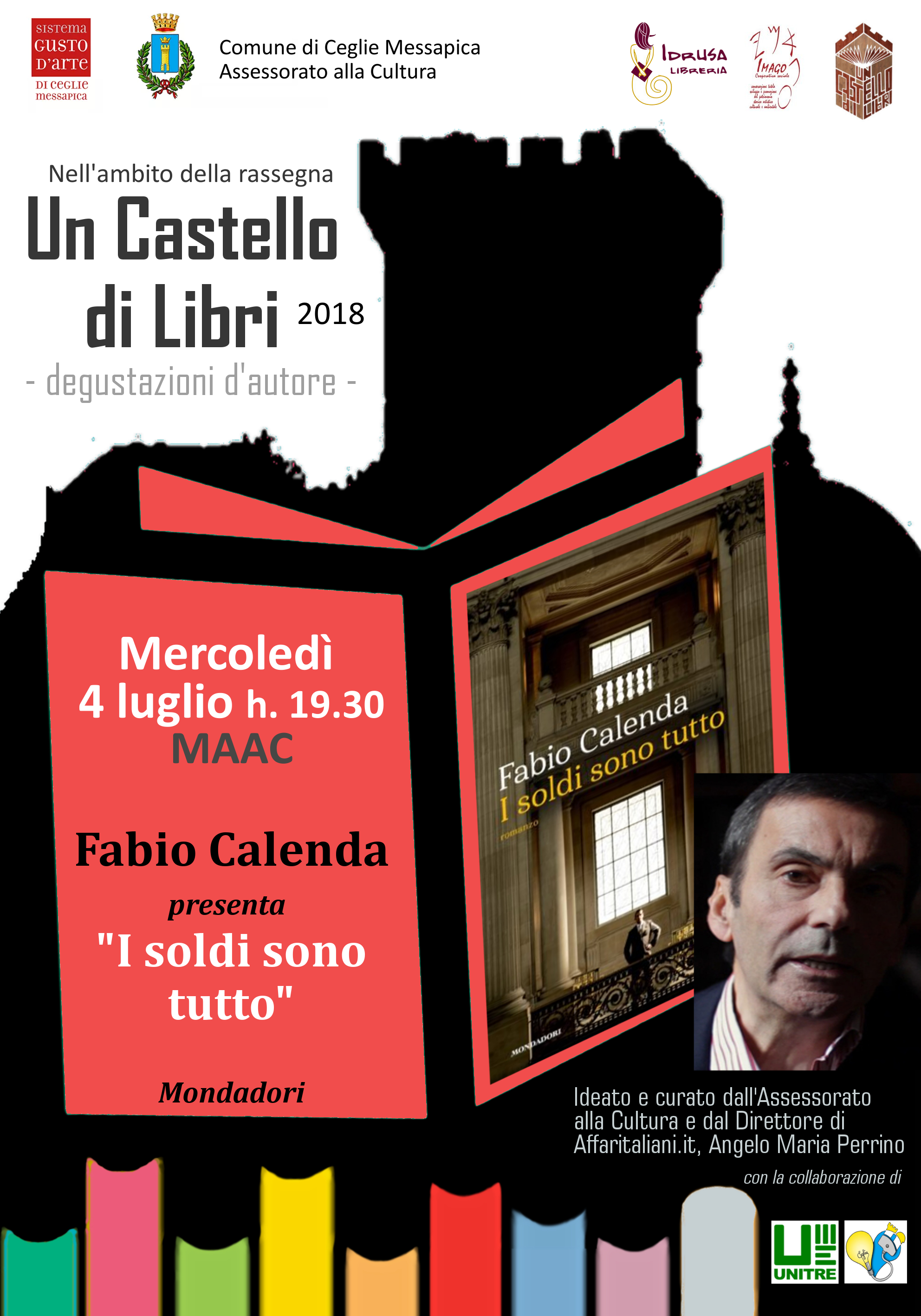 La rassegna, ancora una volta voluta e sostenuta dall’Amministrazione Comunale, Assessorato alla Cultura, ed in particolare dal consigliere Angelo Maria Perrino, Direttore di affaritaliani.it, prenderà il via il prossimo 4 luglio 2018, si svolgerà tra il Castello Ducale, il Maac (Museo Archeologico e dell’Arte Contemporanea), e la Med Cooking School. Vi prenderanno parte nomi importanti del panorama nazionale. Si parte con Fabio Calenda, che presenterà “I soldi sono tutto”, pubblicato lo scorso 12 giugno 2018 da Mondadori. L’appuntamento è per mercoledì 04 luglio 2018, alle ore 19.30, presso la sede del MAAC, in via De Nicola.
