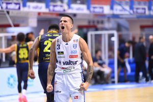 VALTUR BRINDISI: Copeland 15 (1/4, 4/8, 5 r.), Cinciarini 14 (4/6, 1/4, 9 r.), Miani 12 (3/5, 2/3, 6 r.), Mouaha 4 (2/5, 4 r.), Vildera 10 (5/10, 2 r.), Fantoma, Esposito 12 (2/5, 2/4, 1 r.), Radonjic 6 (2/4 da tre, 6 r.), Maspero 2 (0/1, 0/1, 2 r.), Wojciechowski 2 (1/1, 0/1, 2 r.). Coach: Bucchi.