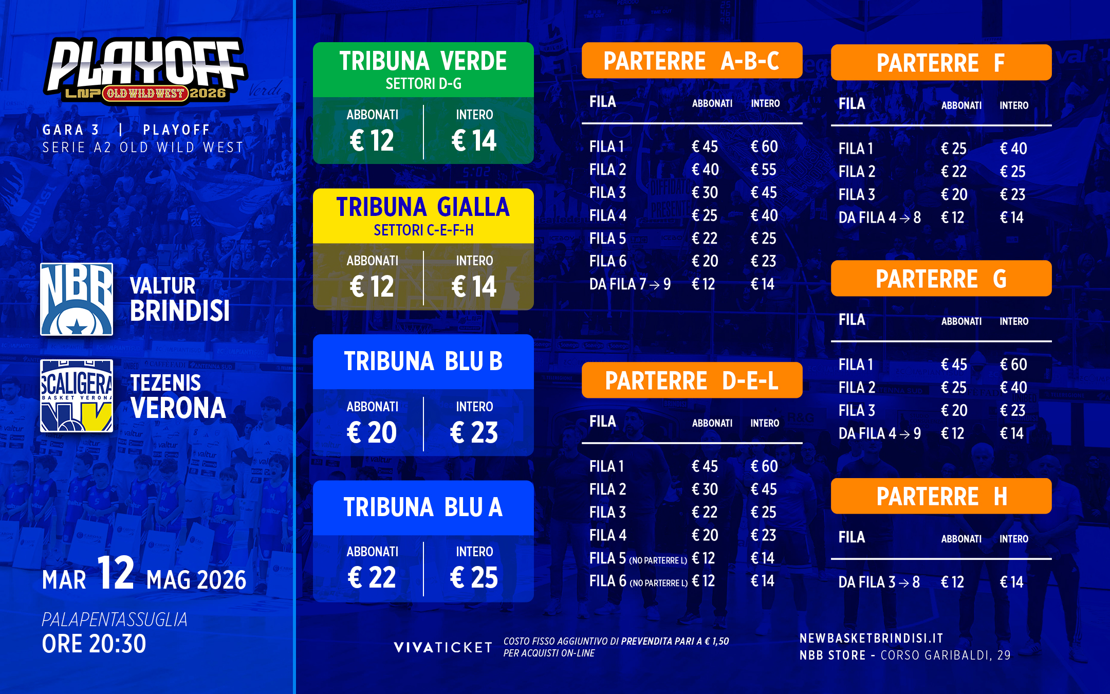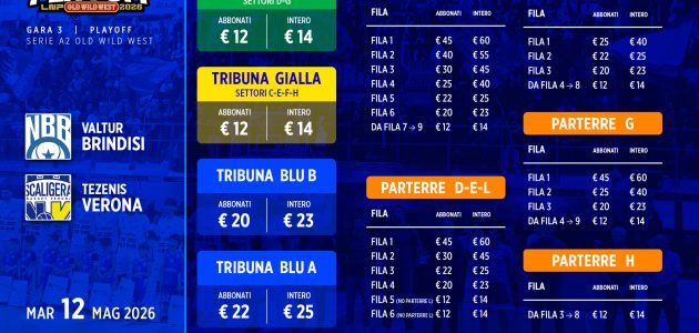 Terminata la fase regolare del campionato di Serie A2, è il momento di resettare e proiettarsi con mente e corpo alla post season. La Valtur Brindisi entra in griglia come sesta del tabellone ed affronterà al meglio delle cinque gare la Tezenis Verona. I playoff sono un campionato a parte, è il momento di restare uniti e spingere la squadra verso il turno successivo.