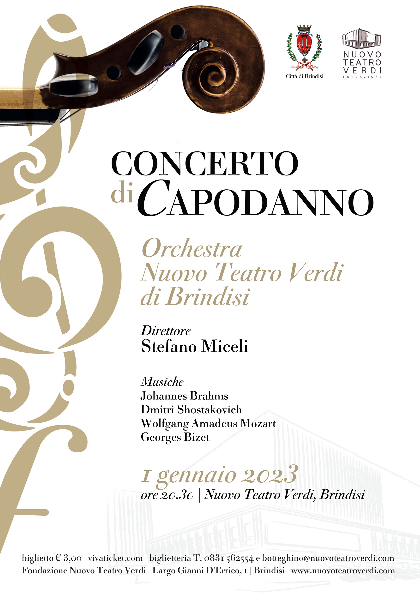 Ticket € 3 disponibile online alla pagina rebrand.ly/ConcertoCapodanno e in biglietteria, dal lunedì al venerdì salvo festivi, ore 11-13 e 16.30-18.30.