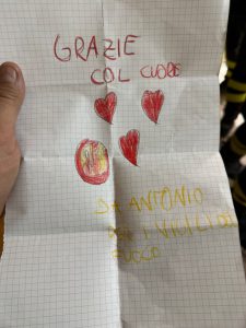 In mezzo a una mattinata di lavoro intenso, fatta di interventi, vento forte e situazioni di emergenza, è arrivato un ringraziamento che vale più di qualsiasi parola ufficiale. Ed è stato quello di un bambino.