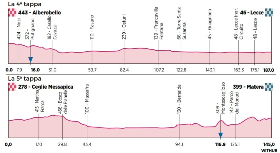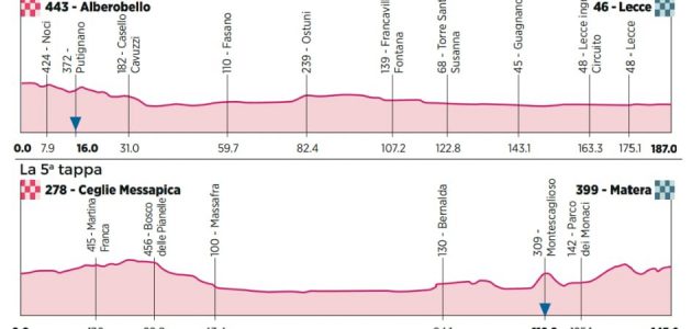 La provincia di Brindisi sarà protagonista con due tappe: la quinta partirà da Ceglie Messapica e si concluderà a Matera. Questo segna un ritorno significativo del Giro nel territorio brindisino, dopo l’arrivo a Brindisi nel 2020. Per Ceglie Messapica, che fu solo punto di passaggio nel 2017, si tratta di un momento storico che rafforza il legame del territorio con il ciclismo, testimoniato dalla tradizionale Coppa Messapica.