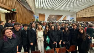 L’udienza, svoltasi nella Sala Paolo VI (Sala Nervi), ha visto la partecipazione di venti delegazioni regionali dall’Italia, fra le trecento pervenute da tutto il mondo. Il Polo liceale Marzolla Leo Simone Durano rappresentava le scuole secondarie di secondo grado della regione.