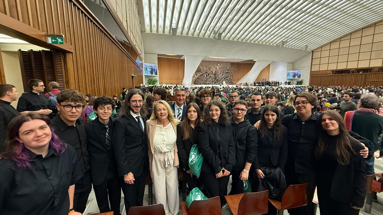 Tra gli studenti, entusiasmo e commozione: molti hanno raccontato di aver percepito un clima di profonda unità e ispirazione. Emozionante anche l’esibizione al cospetto del Santo Padre dell’Orchestra Nazionale, di cui il Liceo “G. Durano” fa parte.