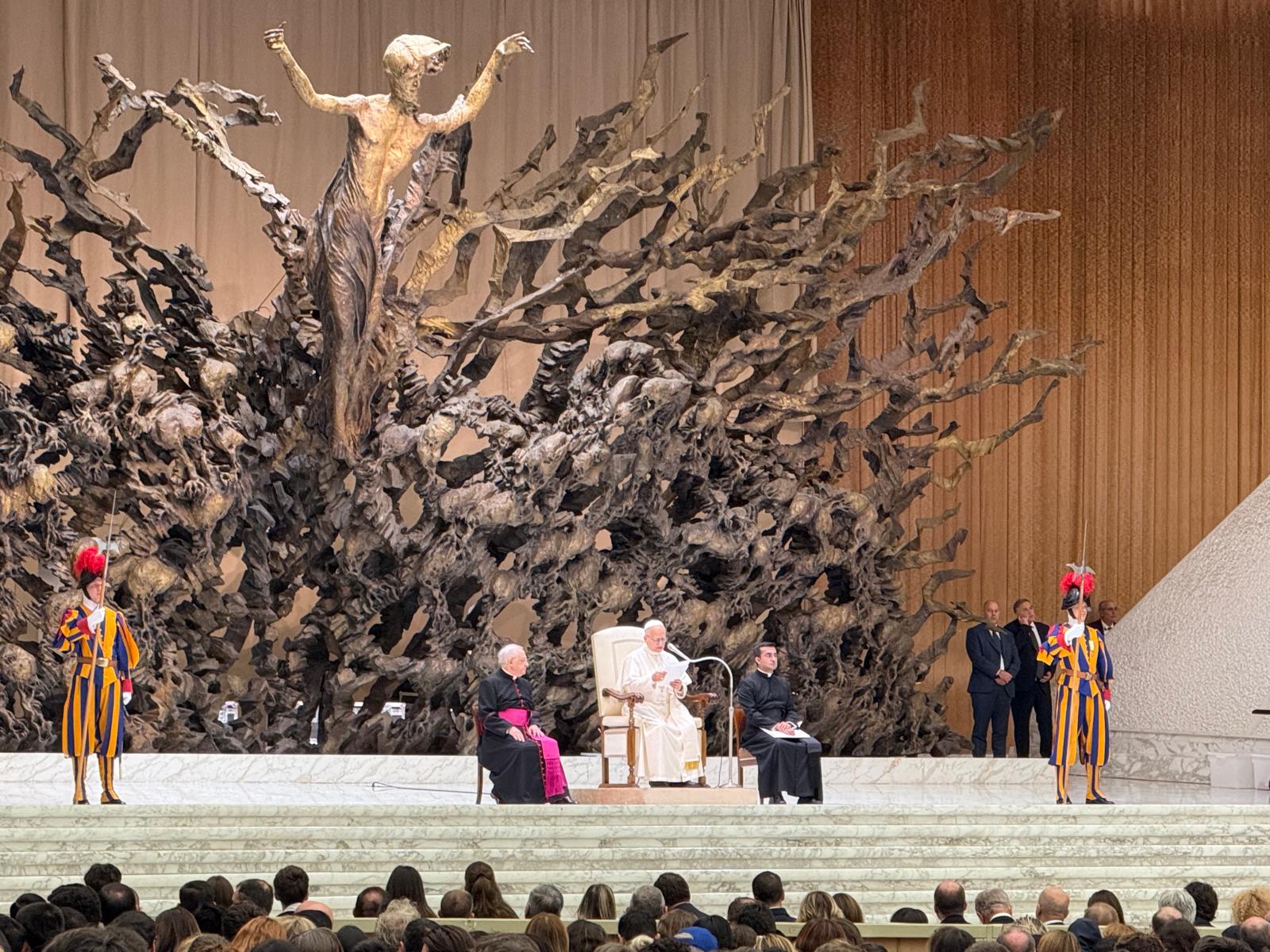 L’udienza, svoltasi nella Sala Paolo VI (Sala Nervi), ha visto la partecipazione di venti delegazioni regionali dall’Italia, fra le trecento pervenute da tutto il mondo. Il Polo liceale Marzolla Leo Simone Durano rappresentava le scuole secondarie di secondo grado della regione.