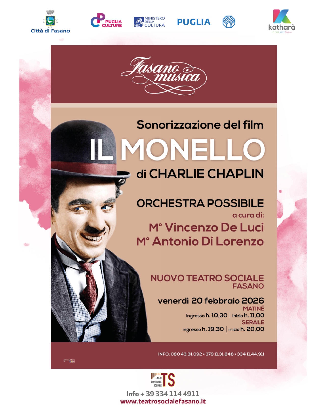 Lo spettacolo, promosso in collaborazione con Fasano Musica, rientra nella programmazione artistico-culturale di Katharà per la stagione teatrale 2025/2026, nell’ambito del progetto di gestione del Teatro Sociale in collaborazione con l’Assessorato alla Cultura del Comune di Fasano e Puglia Culture.