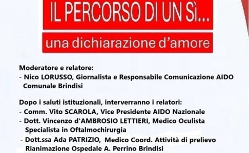 Il convegno, che sarà moderato dal giornalista brindisino Nico Lorusso, responsabile della comunicazione di Aido Brindisi, vedrà la partecipazione di importanti esponenti nazionali e locali della Associazione e del settore Sanitario.
