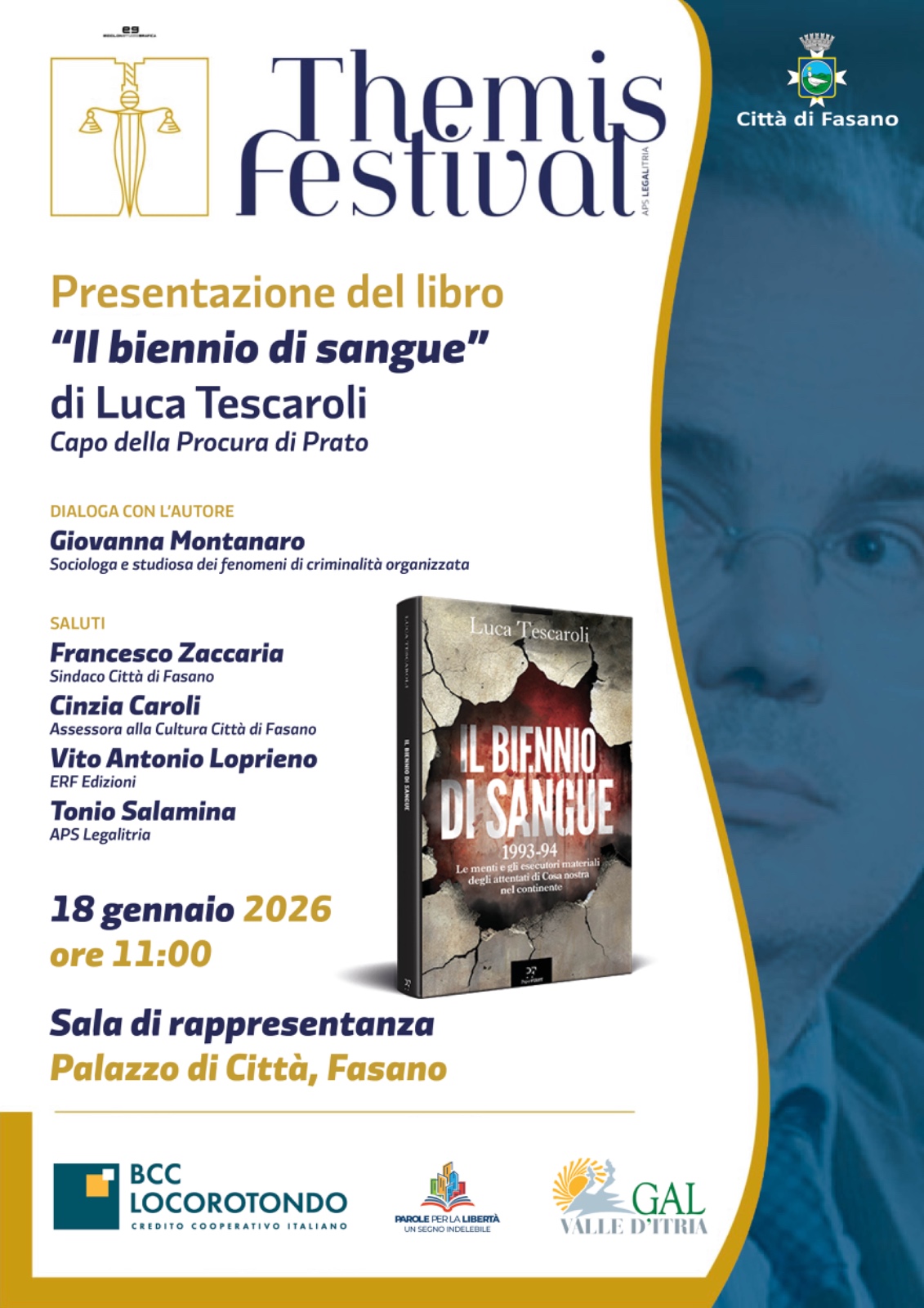 Il cuore della mattinata sarà dedicato al confronto con l’autore: a dialogare con il dott. Tescaroli sarà Giovanna Montanaro, sociologa e studiosa dei fenomeni di criminalità organizzata.