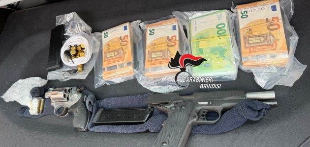 . una pistola marca Smith & Wesson calibro .38 (matricola BSP2858) con 5 munizioni, risultata oggetto di furto avvenuto a Francavilla Fontana il 31 marzo 2024. Le armi e parte del denaro contante erano occultate in un’intercapedine murata di un ripostiglio.