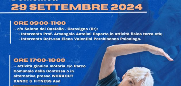 Domenica 29 settembre, dalle 9.00 alle 11.00, presso il Salone di rappresentanza del Castello di Carovigno (Brindisi) si terrà il convegno teorico-pratico In-Forma nella Terza Età, evento di cultura sportiva e formazione continua fortemente voluto dal Comitato Territoriale ACSI Brindisi con il patrocinio del Comune di Carovigno, Commissione Europea e Sport e Salute – Dipartimento per lo Sport della Presidenza del Consiglio dei Ministri.