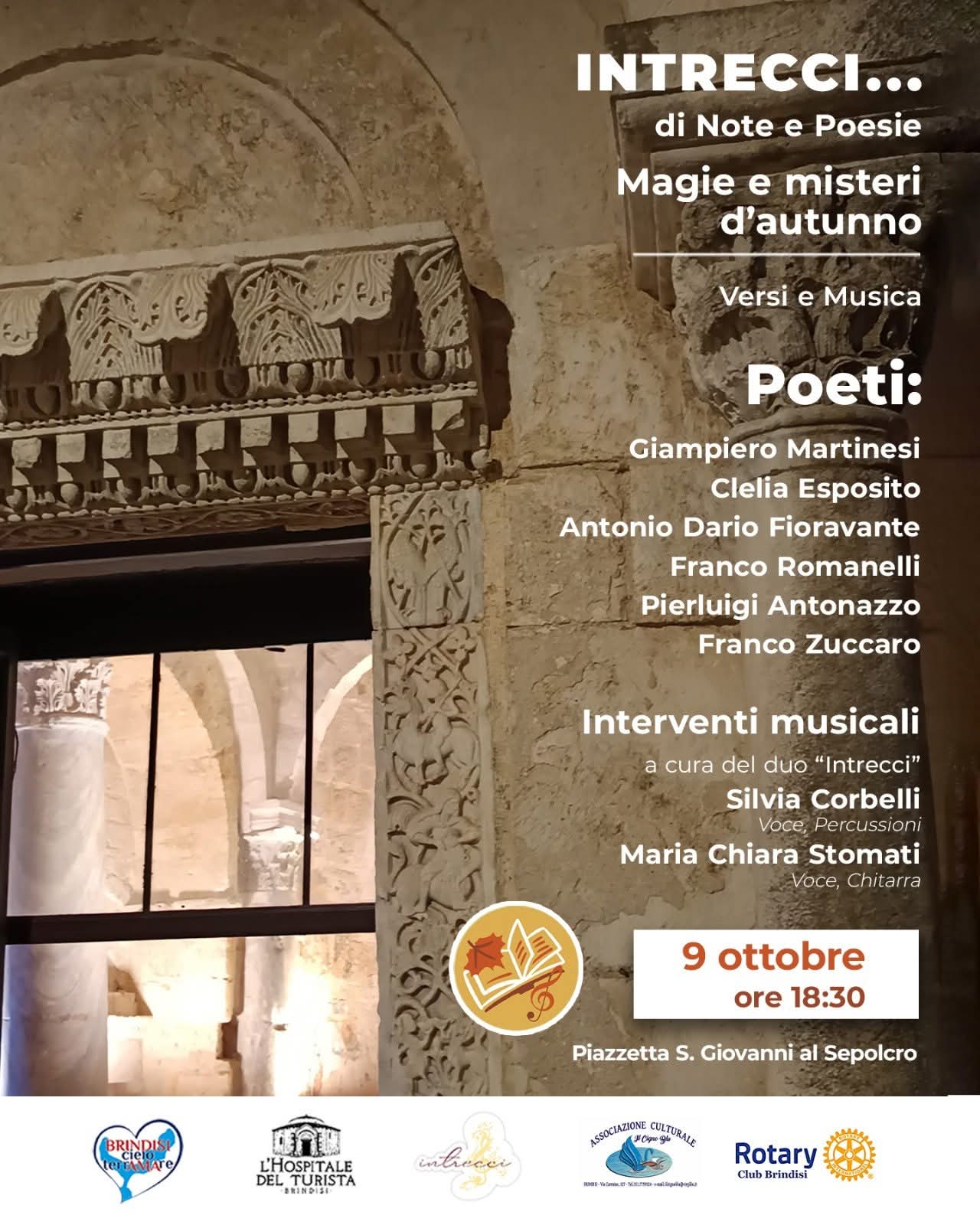 Giovedì 9 ottobre, alle ore 18.30, il Tempio di San Giovanni al Sepolcro ospiterà il terzo appuntamento di “Intrecci di note e poesie”, il format culturale ideato per celebrare il ritmo delle stagioni attraverso l’incontro tra poesia e musica.