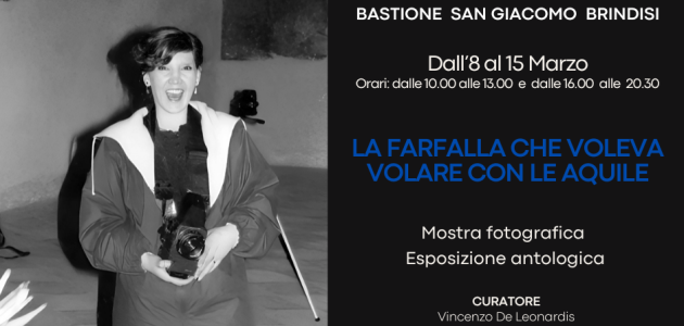 La mostra “La farfalla che voleva volare con le aquile” potrà essere visitata dall’8 al 15 marzo presso il Bastione San Giacomo tutti i giorni: la mattina dalle ore 10,00 alle ore 13.00 e il pomeriggio dalle 16.00 alle 20.30