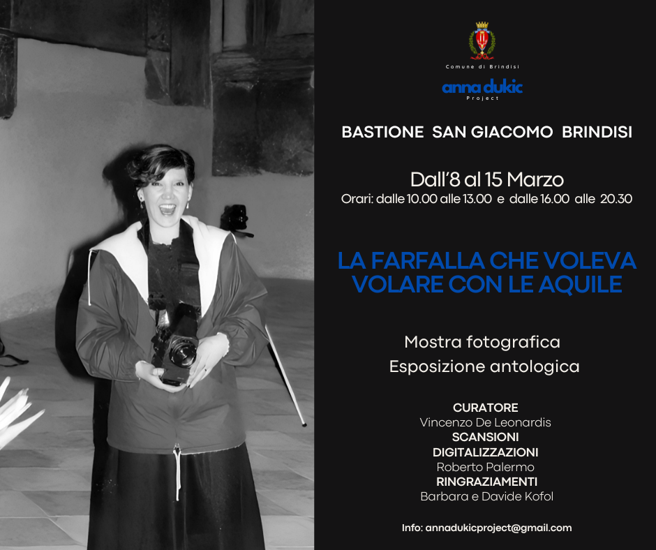 L’esposizione, patrocinata dal Comune di Brindisi, giunge in città dopo l’anteprima nazionale al Festival biennale di Bassano Fotografia e rappresenta un significativo ritorno nel luogo in cui la fotografa visse e lavorò dal 1973 al 1981. In quegli anni Anna Dukic aprì il proprio studio fotografico in viale Belgio, nel rione Bozzano, firmandosi con il cognome del marito, Kofol.
