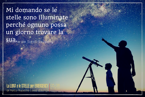 Tutto questo in un evento organizzato dai volontari di Emergency e dagli astronomi dell’ Osservatorio di Acquaviva delle Fonti presso il Parco Rupestre Lama d’ Antico (Fasano) sabato 5 agosto dalle ore 18,30.