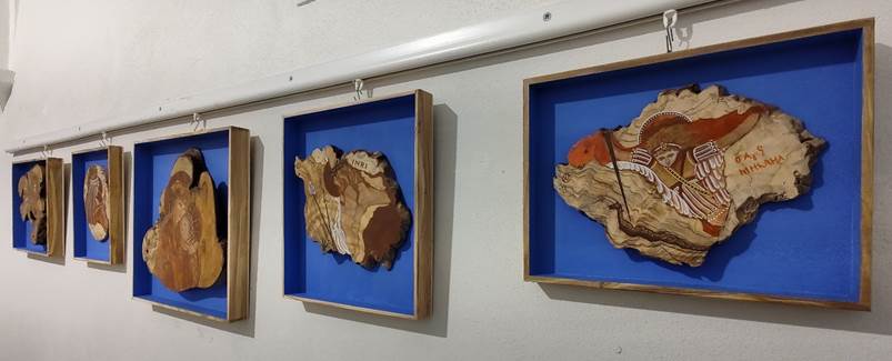 Le loro pitture non si impongono sulla materia, ma la assecondano: è il legno stesso, con le sue venature antiche, a suggerire figure, paesaggi, e sacre icone. Come se i nodi e le curve, plasmati dal vento e contorti dal tempo, avessero custodito immagini in attesa di essere svelate.