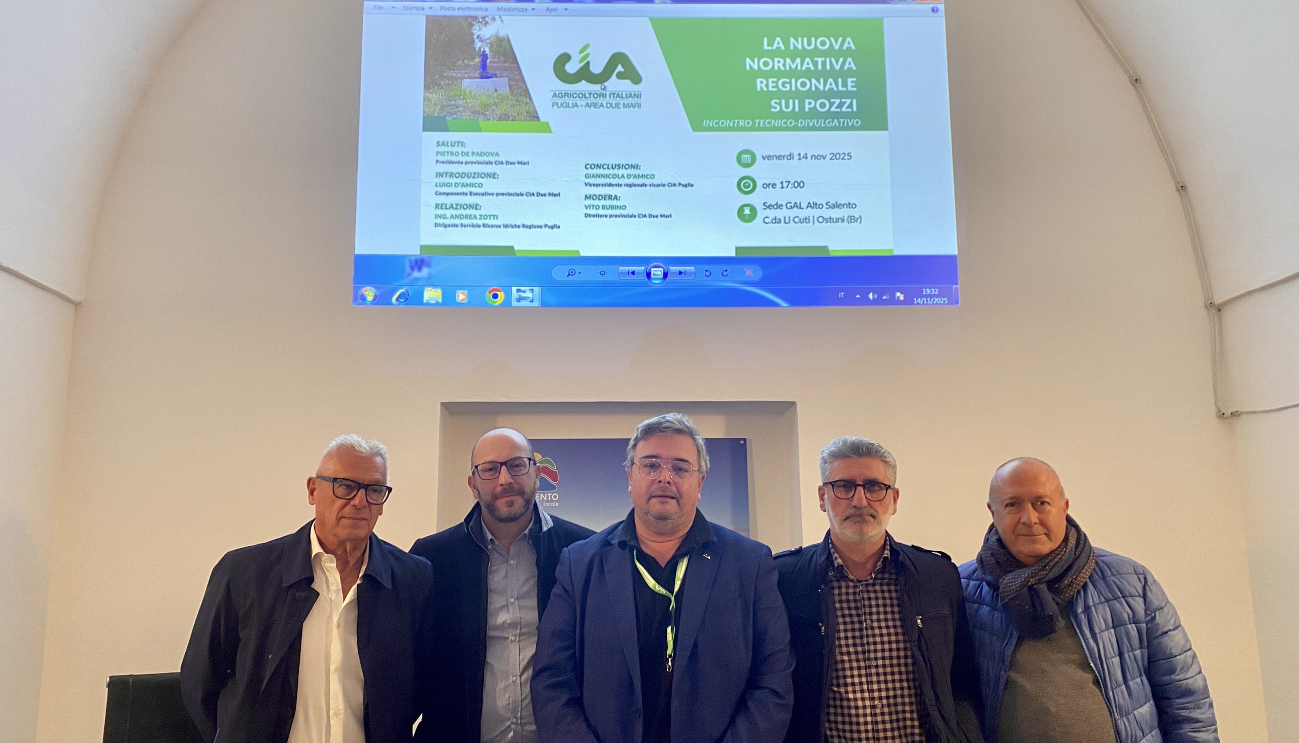 La nuova normativa regionale sui pozzi è stata al centro di un incontro tecnico-divulgativo organizzato venerdì 14 novembre a Ostuni dall’area Due Mari Taranto-Brindisi di CIA Agricoltori Italiani di Puglia.
