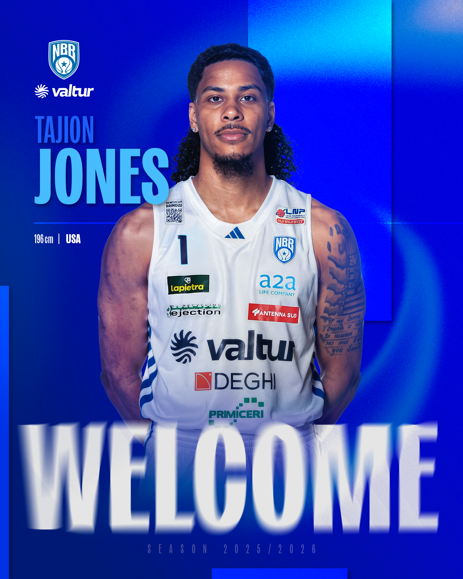 Valtur Brindisi comunica di aver definito l’accordo con l’atleta Tajion Jones, ala americana proveniente da due anni nella massima serie italiana in LBA con la Vanoli Cremona.