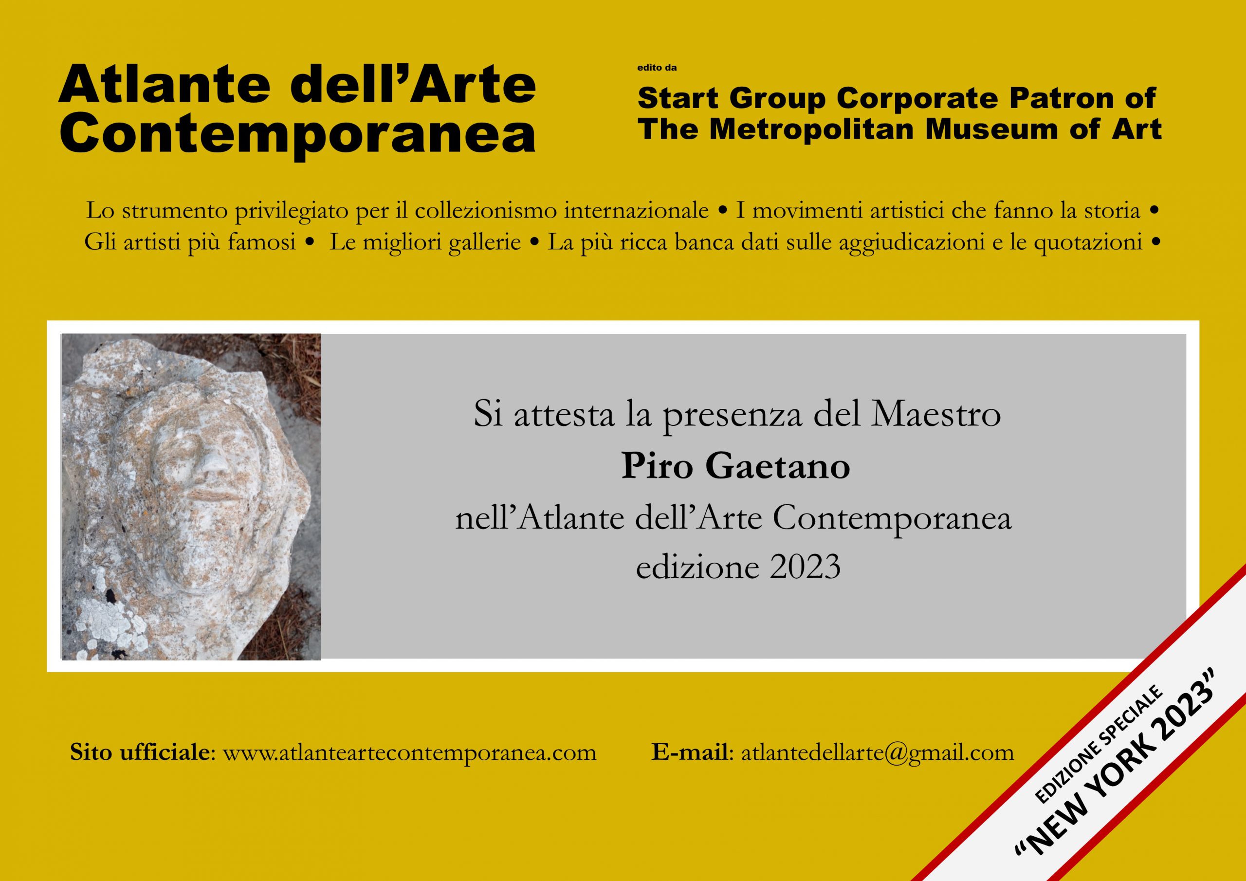 Lo scorso maggio, il Maestro Scultore Prof. Gaetano Piro di Francavilla Fontana è stato inserito nell’Atlante dell’Arte Contemporanea, un volume di grande rilevanza patrocinato dal prestigioso Metropolitan Museum di New York e pubblicato da Giunti Editore. Questo importante riconoscimento, che mette in luce il contributo straordinario del Maestro all’arte contemporanea, è stato anche presentato al Senato della Repubblica.
