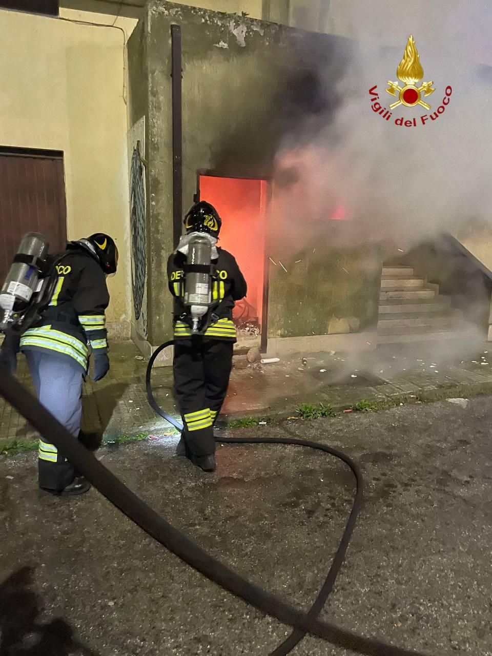 Un incendio si è sviluppato nelle prime ore di ogggi in un piccolo locale condominiale situato al piano terra di un edificio in via G. Galilei, nella zona 167.